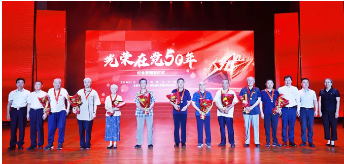 纪念章颁发仪式上,与会领导向老党员颁发了“光荣在党50年”纪念章,并向老党员致以崇高敬意。