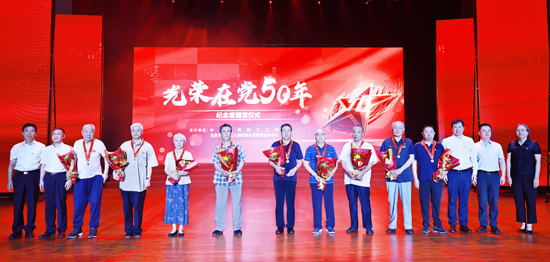 6月26日,二院联合永定路街道举办“光荣在党50年”纪念章颁发仪式,为老党员颁发纪念章并致以崇高敬意。二院党委书记郭大勇,院离退休工作领导小组成员、院属单位领导,老领导、老同志代表等近600人参加活动。