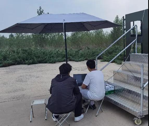 开展样机系统性联合测试时,骄阳当空,试验现场犹如一个巨大的蒸笼,迎面吹来的风里夹杂着酷暑独有的温度。高温之下,依旧是一桌两椅,队员们有条不紊开展数据采集和测试。“大家把项目做好做优的心比太阳更炽热。”队员们始终抱着积极乐观的心态。