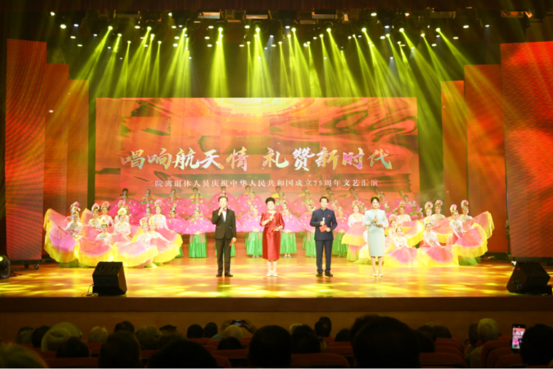 9月20日,二院举办“唱响航天情 礼赞新时代”离退休职工庆祝中华人民共和国成立75周年文艺汇演。近300名退休职工自编自演了13个节目,讴歌了新中国成立75周年来取得的光辉成就,充分表达了广大社会化退休人员坚定不移听党话、矢志不渝跟党走的坚定信念和对伟大祖国的衷心祝福。