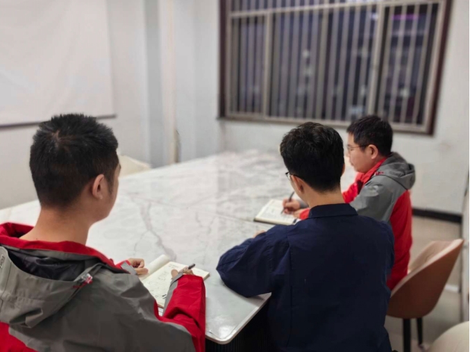 众人拾柴火焰高。实验室的长桌上总是铺满了图纸,大家激烈的讨论声与翻阅图纸沙沙作响的声音像是给他们的鼓励。这种既紧张又充满活力的氛围总令人沉浸而忘记时间。每次在饭点不知过了多久后,就会有人惊呼:“快,食堂阿姨要收摊啦!”