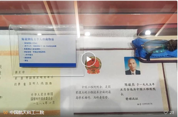 为传承航天精神,筑梦科学未来,23所将已故的陈敬熊院士部分个人物品捐赠给位于浙江省平湖市中国航天科普馆。这些物品,见证了老一代航天人艰苦奋斗的工作作风和自力更生的工作精神,希望借助中国航天科普馆这个国家级航天教育基地,让一代代青年人传承下去。