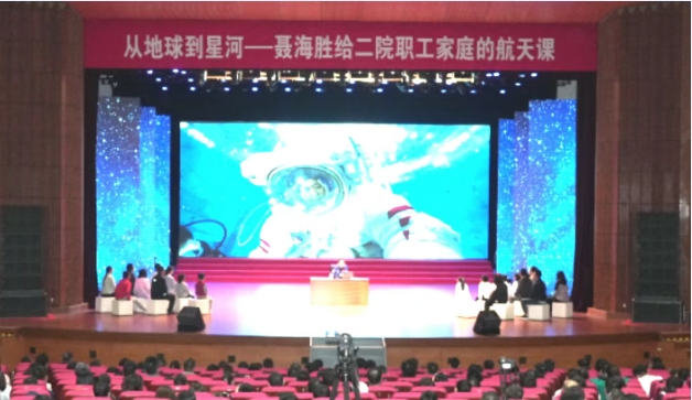 在第十个中国航天日、神舟二十号载人飞船成功发射之际,二院邀请英雄航天员聂海胜,为二院职工家庭带来了一场航天精神传承课。二院院长宋晓明,副院长、工会主席崔春满参加了活动,300个职工家庭现场认真聆听课程。