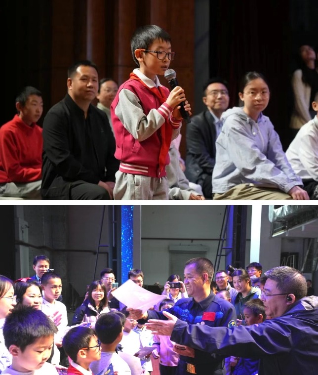 互动环节中,孩子们的提问天马行空:在太空中航天员如何运动,运动的时候会不会飘起来?航天员的氧气从哪里来?聂海胜用通俗易懂的语言回答了每个的问题,并鼓励孩子们好好学习,长大后加入建设航天强国的队伍。