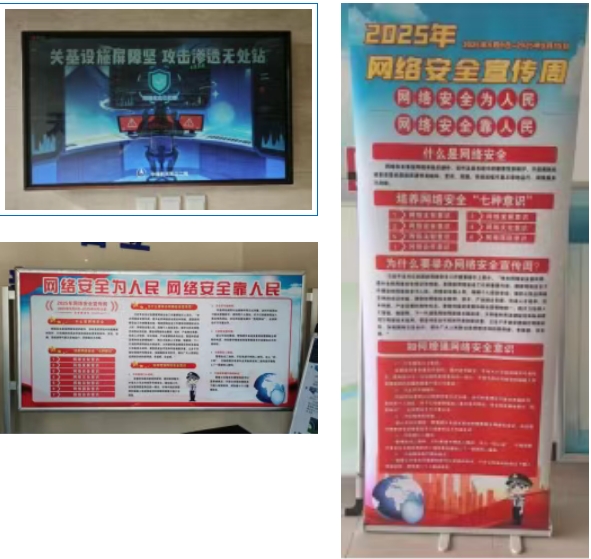 院属各单位积极筹备,精心部署,通过公众号,单位网站,公共区域摆放主题海报和主题标语,楼宇电梯广告屏播放主题视频等方式,构建多维度、全方位宣传矩阵,全面营造浓厚的网络安全氛围。