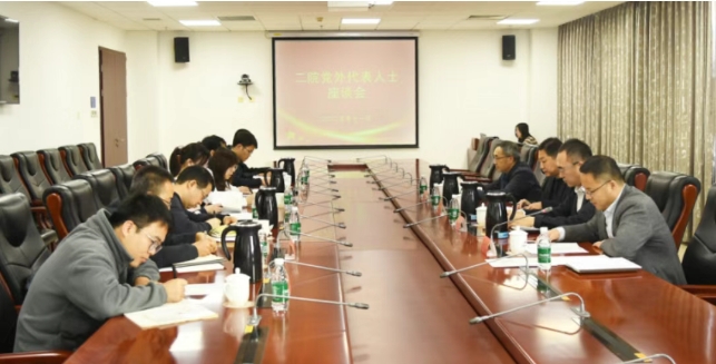 11月18日,二院召开党外代表人士座谈会,深入学习贯彻党的二十届四中全会精神和习近平总书记在党外人士座谈会上的重要讲话精神,传达集团公司党外代表人士建言献策工作座谈会精神,就二院“十五五”期间发展听取党外代表人士意见建议。二院党委书记郭大勇、院本部相关部门领导、院属单位党外代表人士等参加会议。
