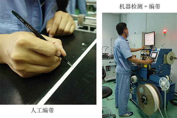 八室主任告诉记者,这是今年新到位的电阻高速测包机,它集外观尺寸检查、字符标识检查、反料检测、电参数检测、编带包装于一体,具有高可靠性、高生产效率的特点。以往的电阻检测和编带都依靠人工进行,电阻元器件长宽尺寸只有不到2毫米,在编带时需要员工趴在工作台上用镊子一只一只夹到编带机上,连大气都不敢喘,生怕一不小心就把芝麻粒大小的电阻吹跑了。这样的精细活儿,往往一个人紧张忙碌一天才能编带3000多只。“现在有了电阻高速测包机,连测试加编带,速度最高可达2800只/分钟,实现了上百倍效率的提升,大大解放了人力。”。