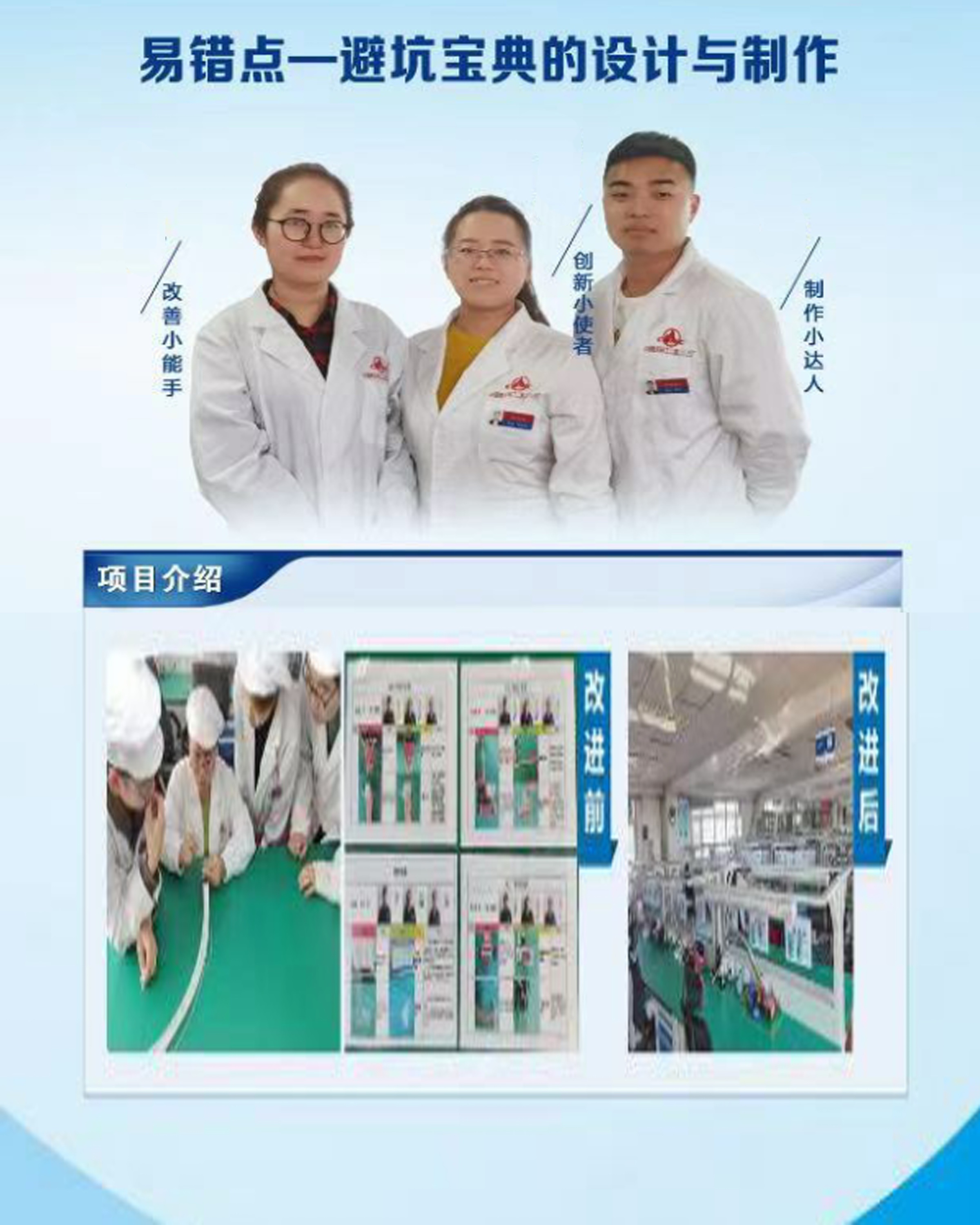 在电缆制作过程中,操作者常常习惯性地把容易疏忽,不易发现的难点、易错点称作“雷坑”,工作中没少踩雷入坑让大家是有苦难言,创新小使者娜姐,制作小达人杰哥,改善小能手蓉儿,一行三人励志要排雷填坑,整理资料,总结收集,出图排版,历时一个月,涉及班组内3种电缆的“避坑宝典”新鲜出炉,利用秘制口诀和措施,将难点、易错点透明化,图文展示更生动具体,学员使用第一周好评如潮,出错率更是降为零,成为成功者的标配,作为优秀改善案例在全车间推广。
