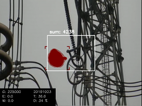 800千伏输电线路中铁塔上相关设备检测,蓝色部分表示漏电现象较弱