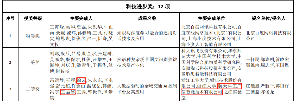 近日,中国人工智能学会发布《2022年度吴文俊人工智能科学技术奖奖励公告》,二院智慧产业公司广信子公司依托集团公司智能交通分中心、钟山院士工作站,联合浙江工业大学、银江技术股份有限公司、浙江大学、之江实验室申报的“大数据驱动的全域交通 AI 控制平台及其应用”,获得“吴文俊人工智能科学技术奖科技进步奖二等奖”。本次吴文俊人工智能科学技术奖科技进步奖仅评12项。