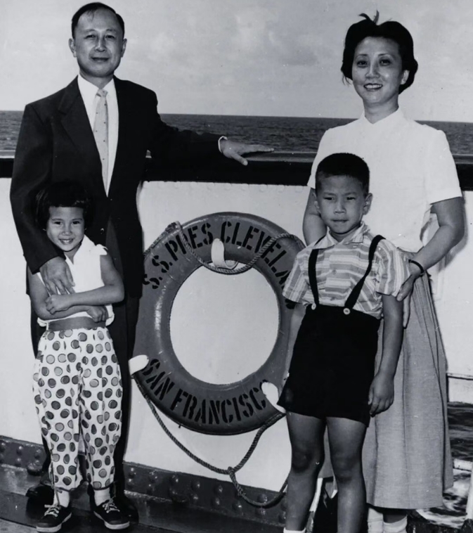 1955年钱学森一家启程回国时留影。图片来源:钱学森图书馆