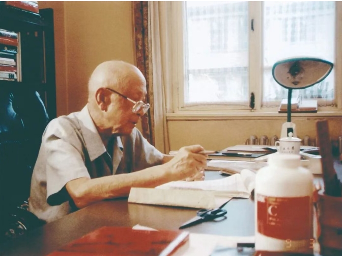 钱学森晚年积极探索思维科学领域。图为钱学森在家中书房撰写论文。图片来源:钱学森图书馆