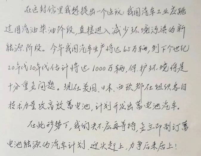 1992年8月22日,钱学森写信,探讨汽车工业。图片来源:钱学森图书馆