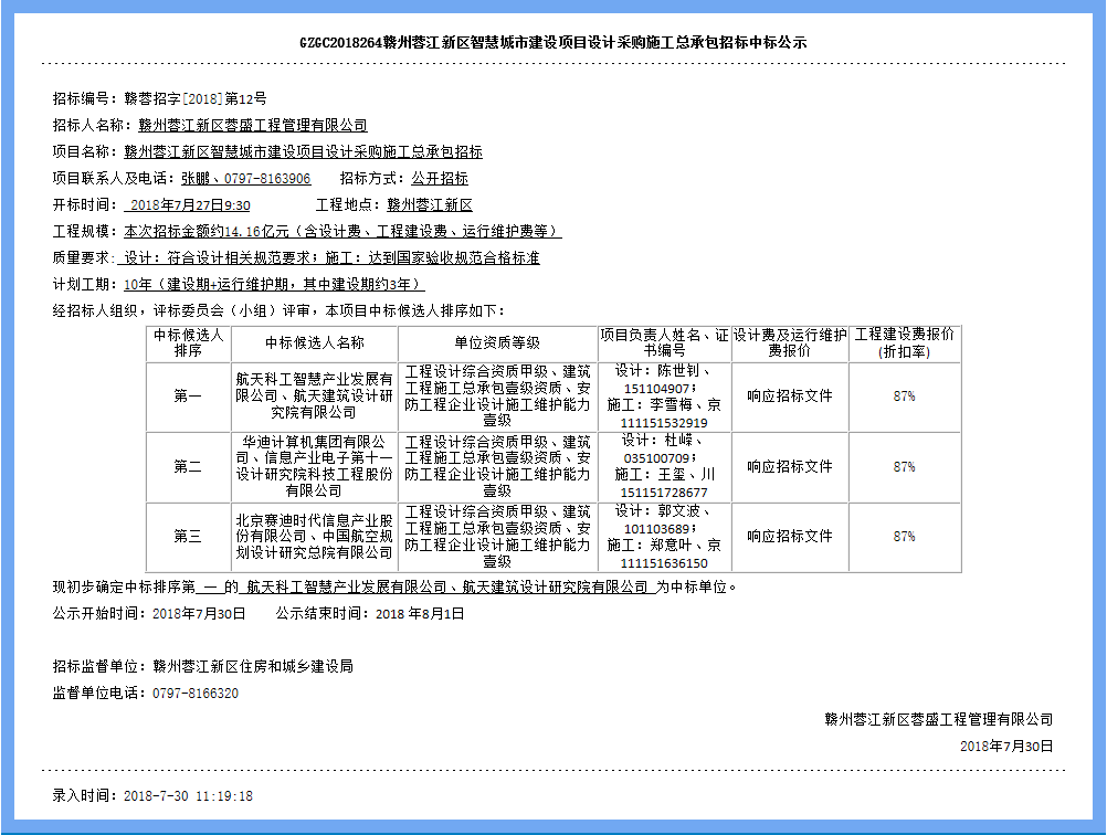 近日,二院智慧产业公司成功中标“赣州蓉江新区智慧城市建设项目设计采购施工总承包”项目,中标总金额14.16亿元。