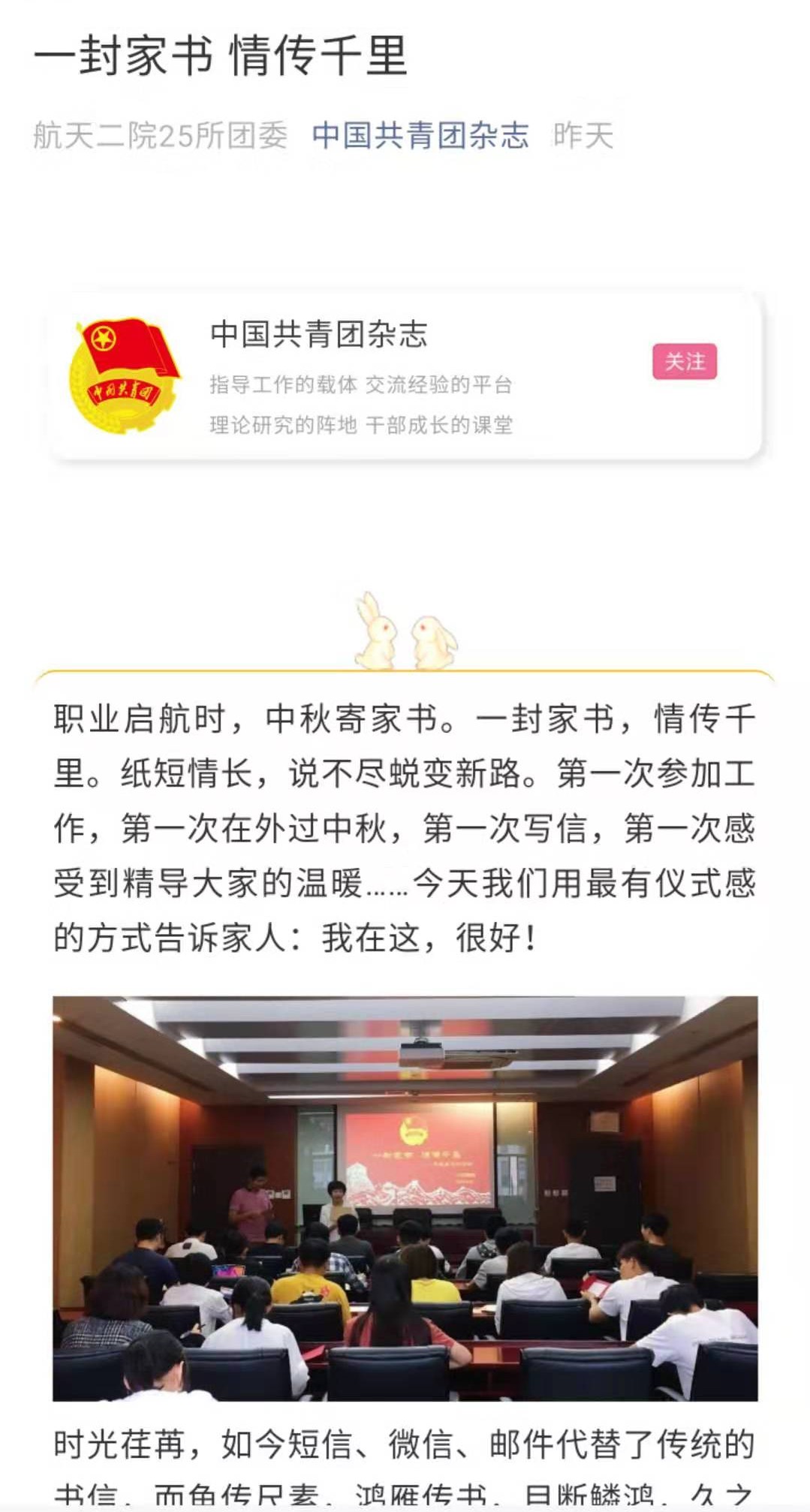 时光荏苒,如今短信、微信、邮件代替了传统的书信,而鱼传尺素,鸿雁传书,目断鳞鸿,久之升华为中国乡土文明重要维度的家书文化,依然有着其独特的功能和魅力。9月10日,时值中秋佳节来临之际,所团委准备了定制信笺、明信片和信封,组织新入职职工举办了“一封家书,情传千里”中秋寄家书活动。该活动作为所团委“暖心文化”品牌活动的一部分,为青年提供更加温暖的工作环境,使新员工更快地融入到新集体中,激发工作热情,增强归属感。