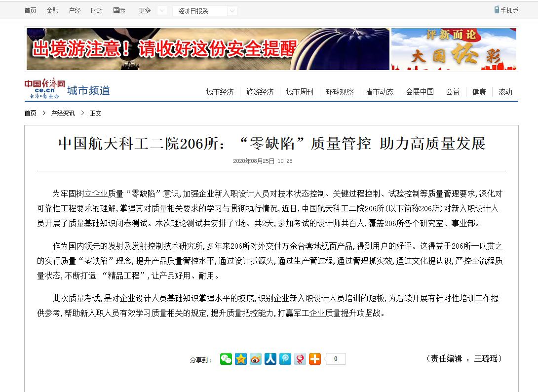 中国经济网报道206所贯彻“零缺陷”质量管控