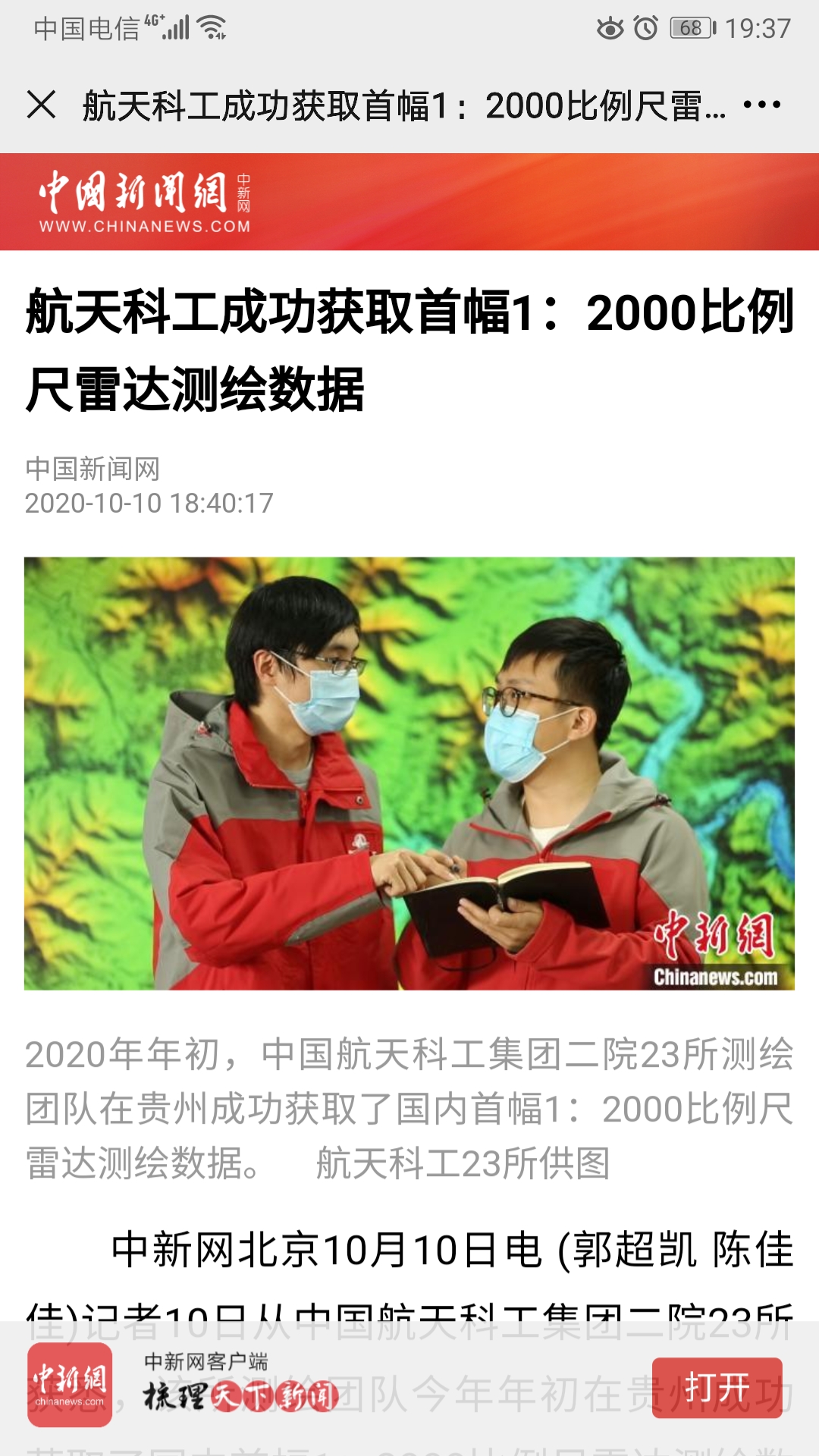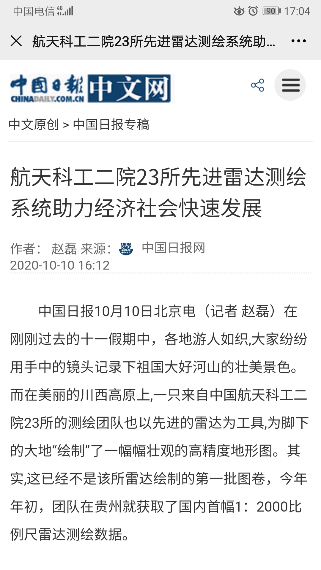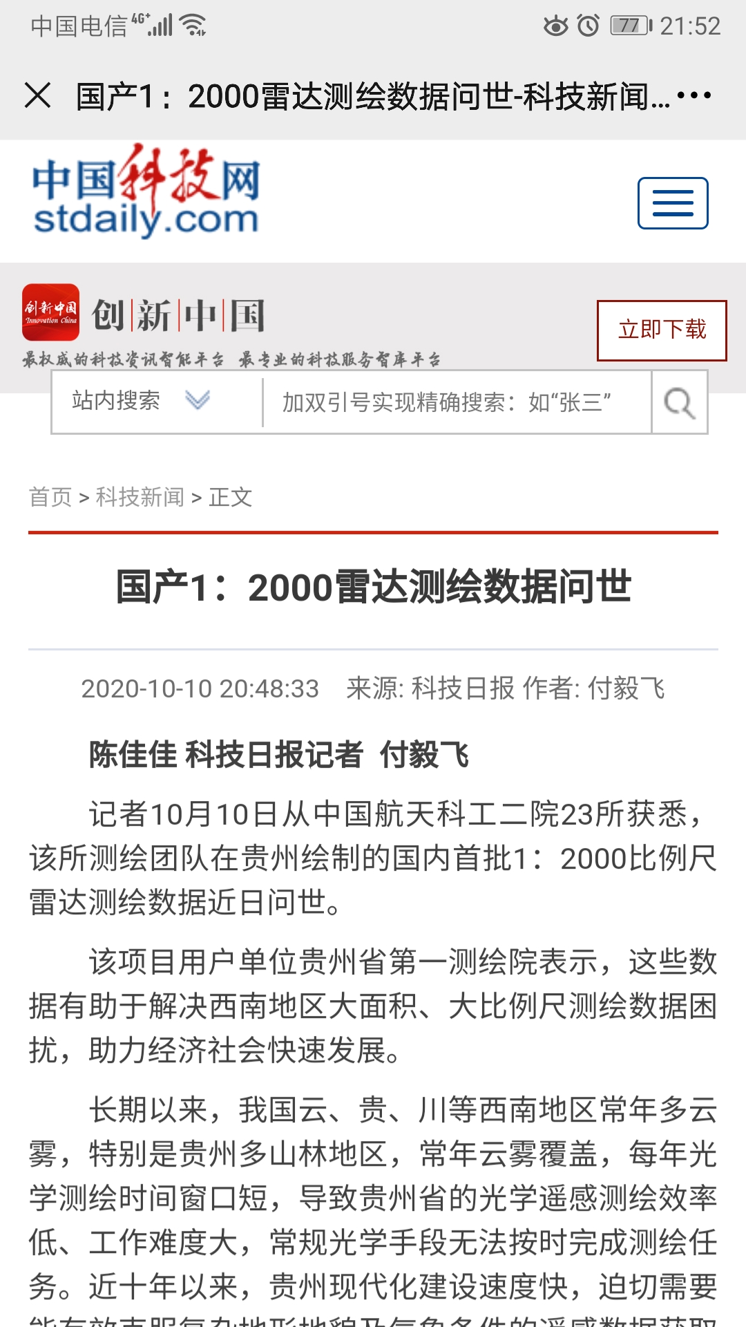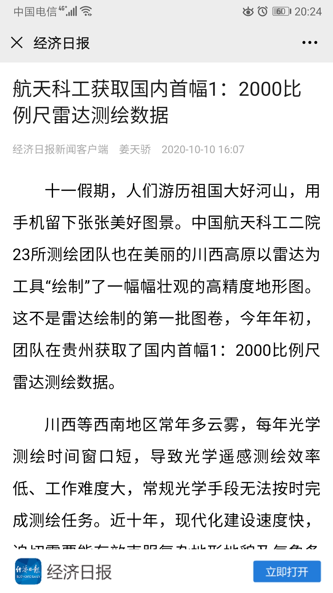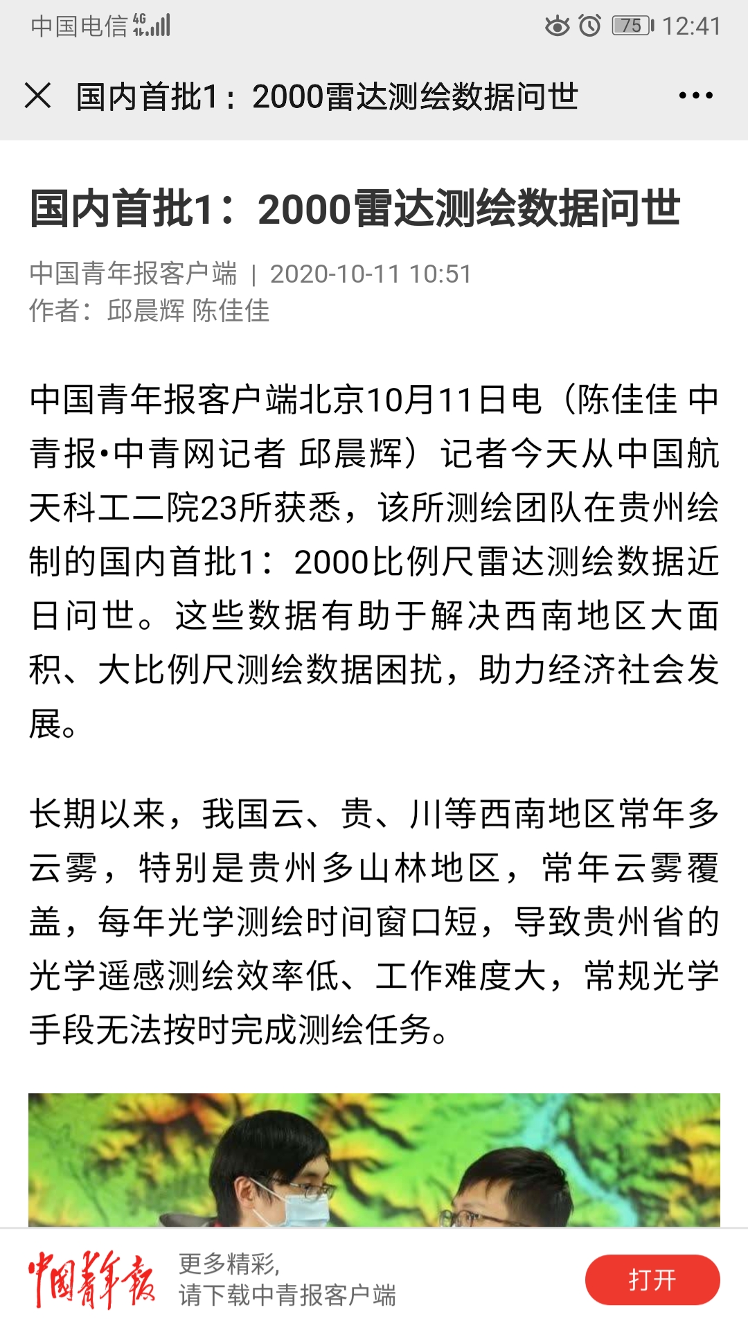 近日,科技日报、中青报、中新社、经济日报、中国日报等央媒报道23所获取国内首批1:2000比例尺雷达测绘数据。