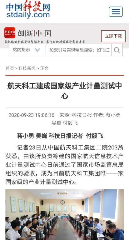 中国科技网:航天科工建成国家级产业计量测试中心