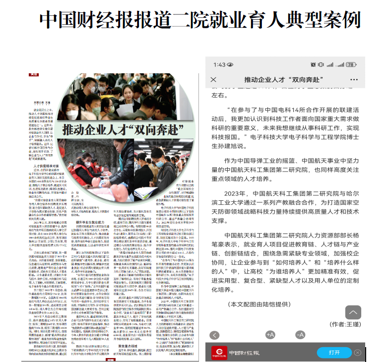 近日,《中国财经报》刊登报道《推动企业人才“双向奔赴”》,宣传了二院在教育部供需对接就业育人项目中的典型做法。
