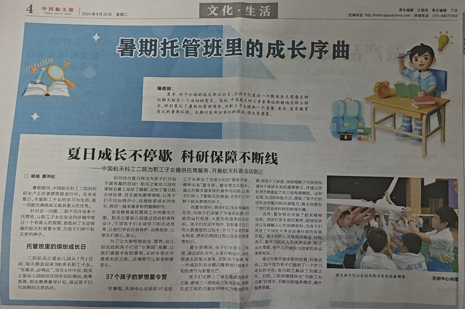 暑假期间,中国航天科工二院的科研生产正在紧锣密鼓进行中。在炎炎夏日,丰富职工子女的学习与生活,是一项既充满挑战又极具意义的任务。