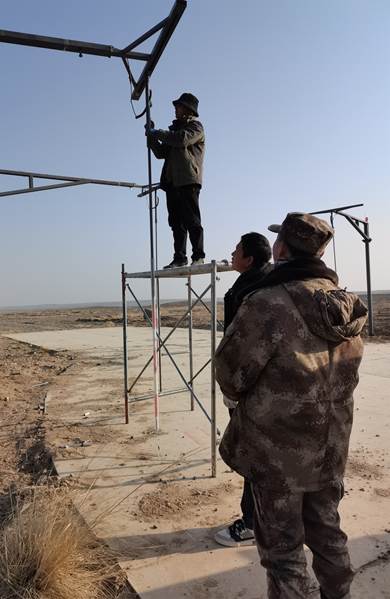 恶劣的天气给项目组成员带来了诸多不便,但即便这样,施工进度依然严格按照用户的要求有序展开,戈壁滩中一片热火朝天的繁忙景象。