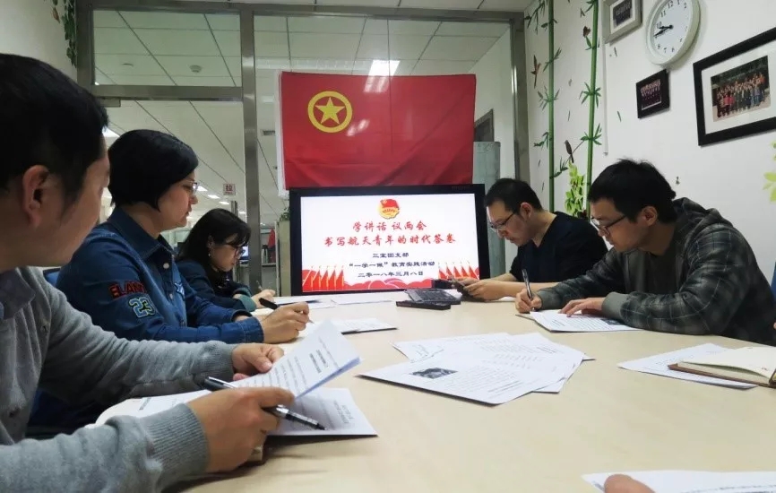 党建带团建,结合时事政治加强形势任务教育和理想信念教育,拧紧青年思想总开关。党的十九大召开以来,三室团支部定期组织青年开展“一学一做”教育实践系列活动,使支部青年在深入的学习交流中保持思想过硬,紧跟时代步伐。围绕“不忘初心,牢记使命”、“书写航天青年的时代答卷”等主题,邀请所团委与会指导,带领青年书写砥砺奋进,航天报国的红色情怀。