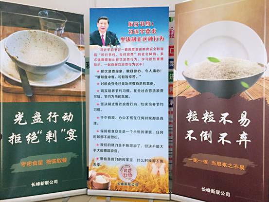 203所食堂门口,有这样一排宣传展架,倡导大家厉行节约,反对浪费!光盘行动,拒绝“剩”宴!
