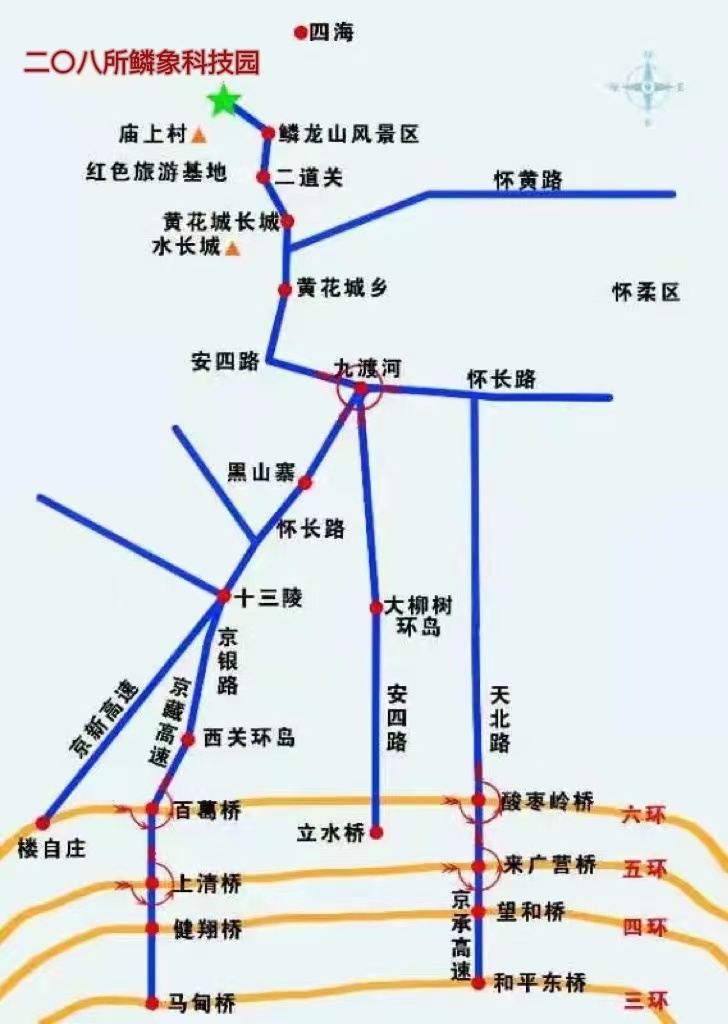 208所鳞象科技园位于怀柔区九渡河镇鳞龙山自然风景区,鳞龙山因气势宏伟、连绵起伏,犹如一条巨龙而得名,流转而过的九渡河波光盈盈,环境优美,气候宜人。