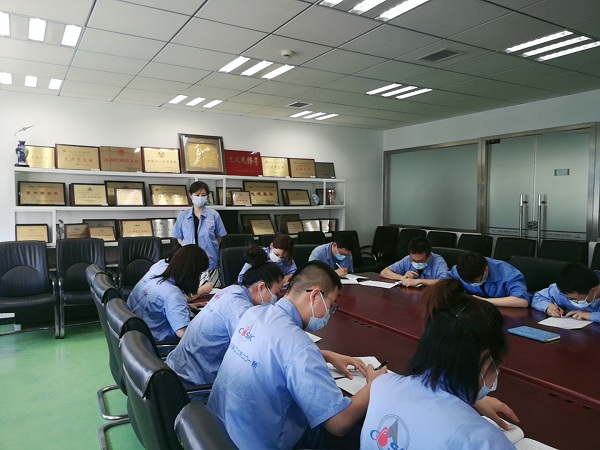 竞赛前,一室各组组长及6S兼管员为本次竞赛提前准备了题目库,由标准、质量、安全、保密与防疫五部分组成。为保证公平,不同的岗位配备不同的试卷。一室职工严肃对待此次竞赛,赛前利用休息时间认真学习,提高业务水平。在竞赛当天,随着考试开始,选手们迅速投入到试卷的题目之中,题目虽小但意义斐然。紧张的气氛使选手在竞赛中感悟科研工作的严谨性,督促职工以更加严慎细实的态度面对今后繁重的生产任务。