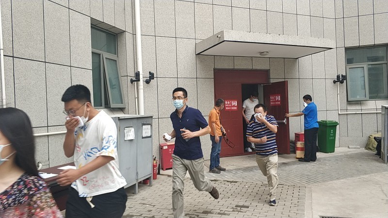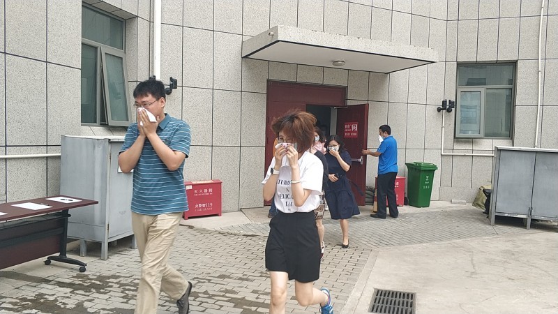 通过理论知识学习后,全体员工进入自救逃生演练环节。10时整,消防应急演习正式开始,10时02分,随着火灾警报响起,各楼层志愿消防院迅速到达指定位置,全体员工用湿毛巾捂住口鼻,降低身姿,快速有序地按照消防应急预案既定的逃生路线,撤离至指定安全地点。从警报响起到最后一名员工撤离到达安全地点,仅用时2分10秒。员工到达安全地点后,各部门负责人迅速清点人数,确认公司大楼内178名员工都已安全撤离,并及时将清点结果汇报给演习总指挥。