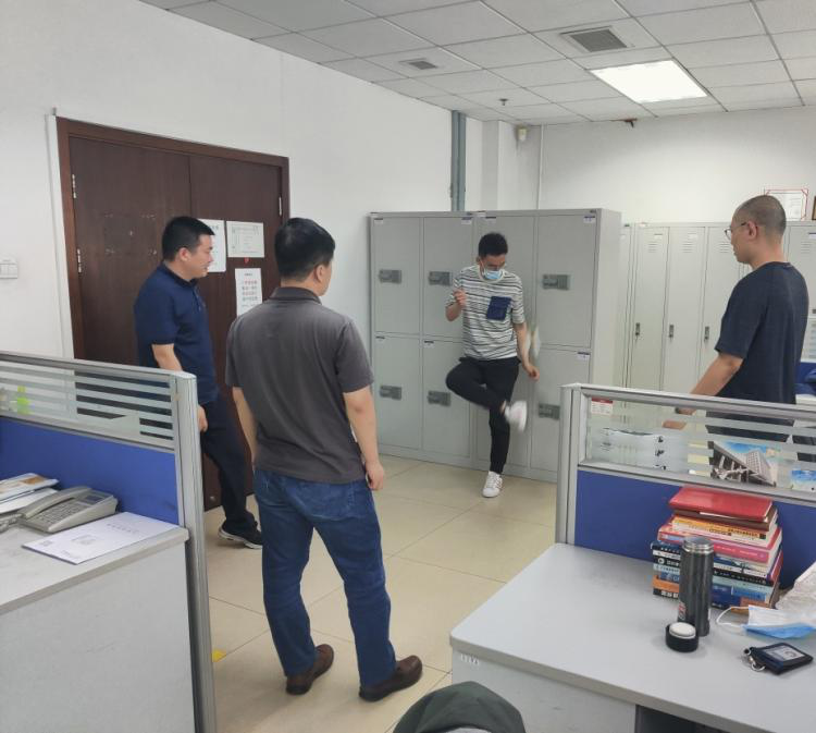 利用工间操,大家有的组团踢毽子,有的做几组俯卧撑,有的站起来拉伸一下筋骨。
