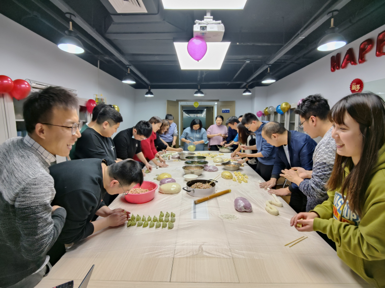 活动前一天,大家下班后,早早就去超市采购,做好前期的准备工作,有的拌肉馅,有的和面团,有的擀面皮,有的包饺子,忙的不亦乐乎。大家积极分享包饺子的经验,互相学习,一个个都干劲十足。