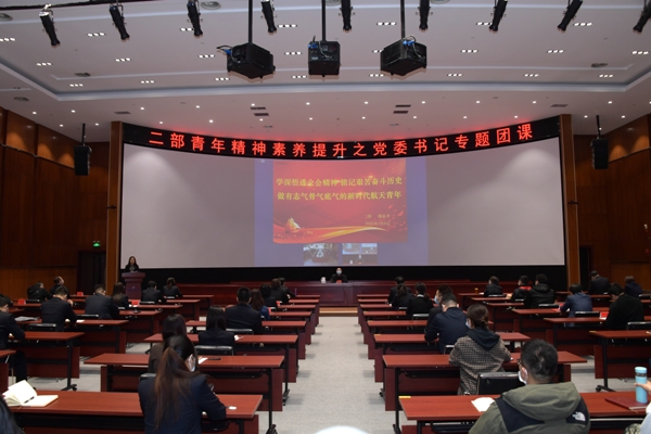 二部各党支部书记、部分本部处长、青马班第一期学员、第二期预备学员、团干部代表、青年典型代表等110余人分别在主会场、分会场参会学习。(文/郭佳瑞)