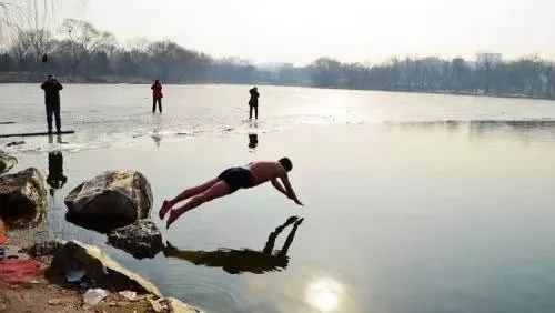 当然一年四季,这里更少不了野泳爱好者,几十年如一日,风雨无阻。男女皆有,老年人居多,劈波斩浪,湖中畅游,好不惬意!冬天的时候,游泳爱好者硬是凿开一条或几条长达几十米的长方形冰面,扒拉着冰凌碴子,照游不误,引得游人纷纷驻足观看。遗憾的是,这几年出于安全等多种因素考虑,这个游泳之地已经被园方取消了,取而代之的是一片片漂浮的水草绿洲。