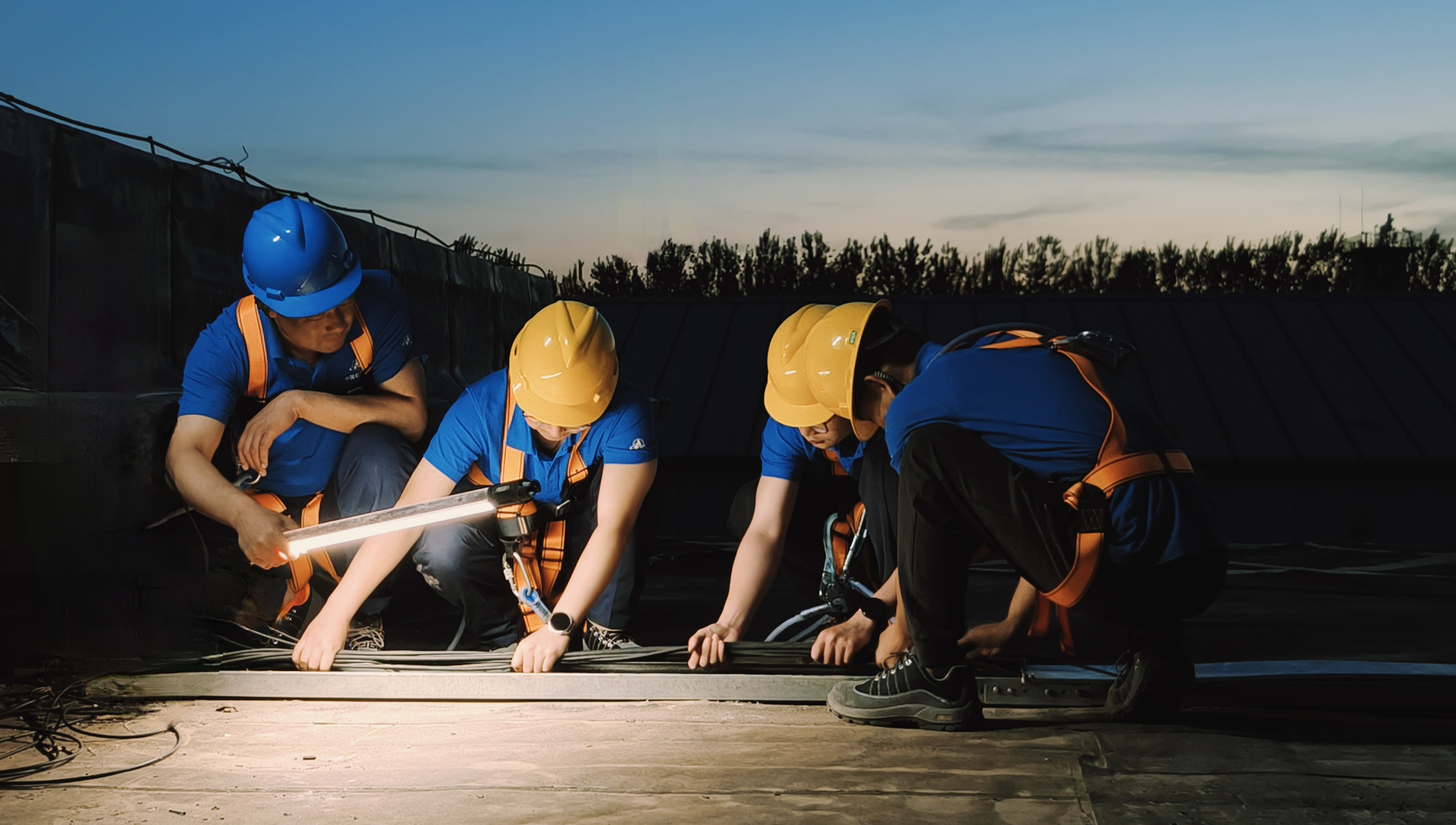 图为总装青年在外场进行雷达系统电缆铺设。(摄/杨函博 文/胡彩菊)