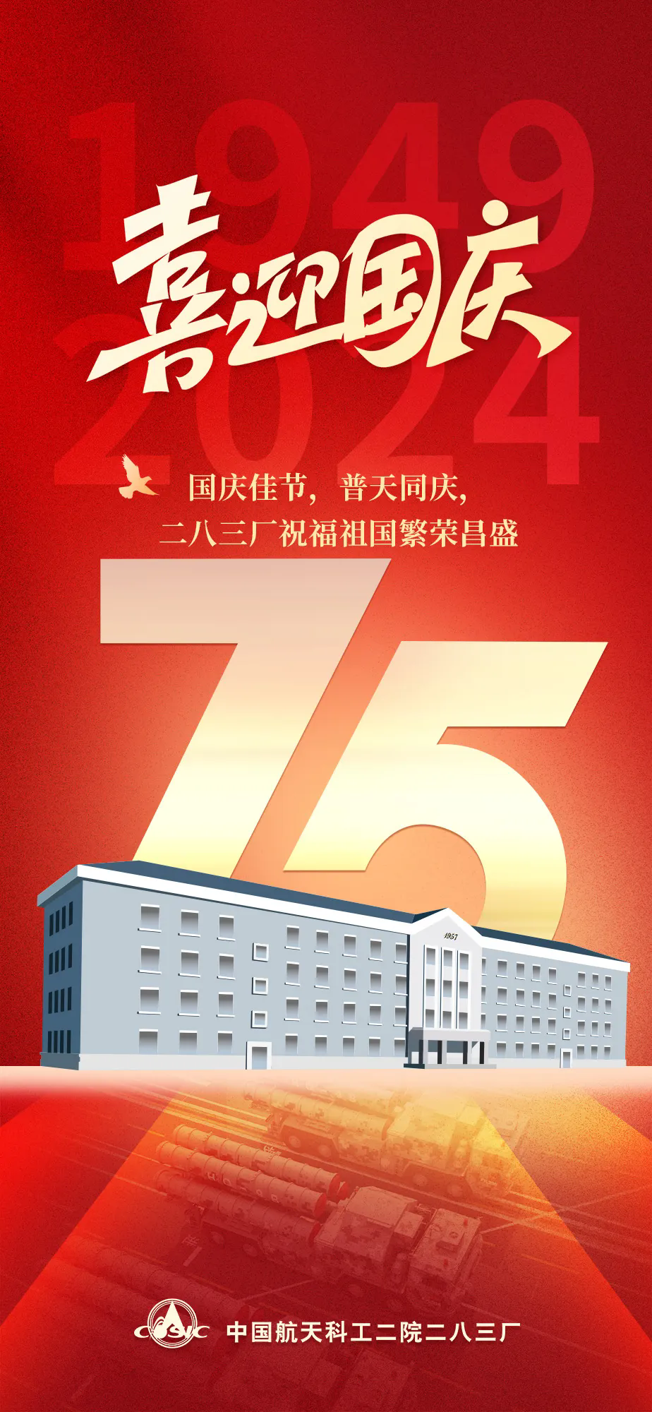 今天,我们迎来了中华人民共和国成立75周年。75年前,第一面五星红旗在首都北京上空冉冉升起,中华民族迎来浴火重生的曙光;今天,一个充满生机的中国、一个充满希望的中国,已经巍然屹立在世界的东方,中华民族迎来了从站起来、富起来到强起来的伟大飞跃。岁月的年轮,镌刻奋斗的足迹;历史的选择,绘就波澜壮阔的诗行。让我们以青春之名,书写清澈的爱,以奋斗之心,祝福祖国母亲!