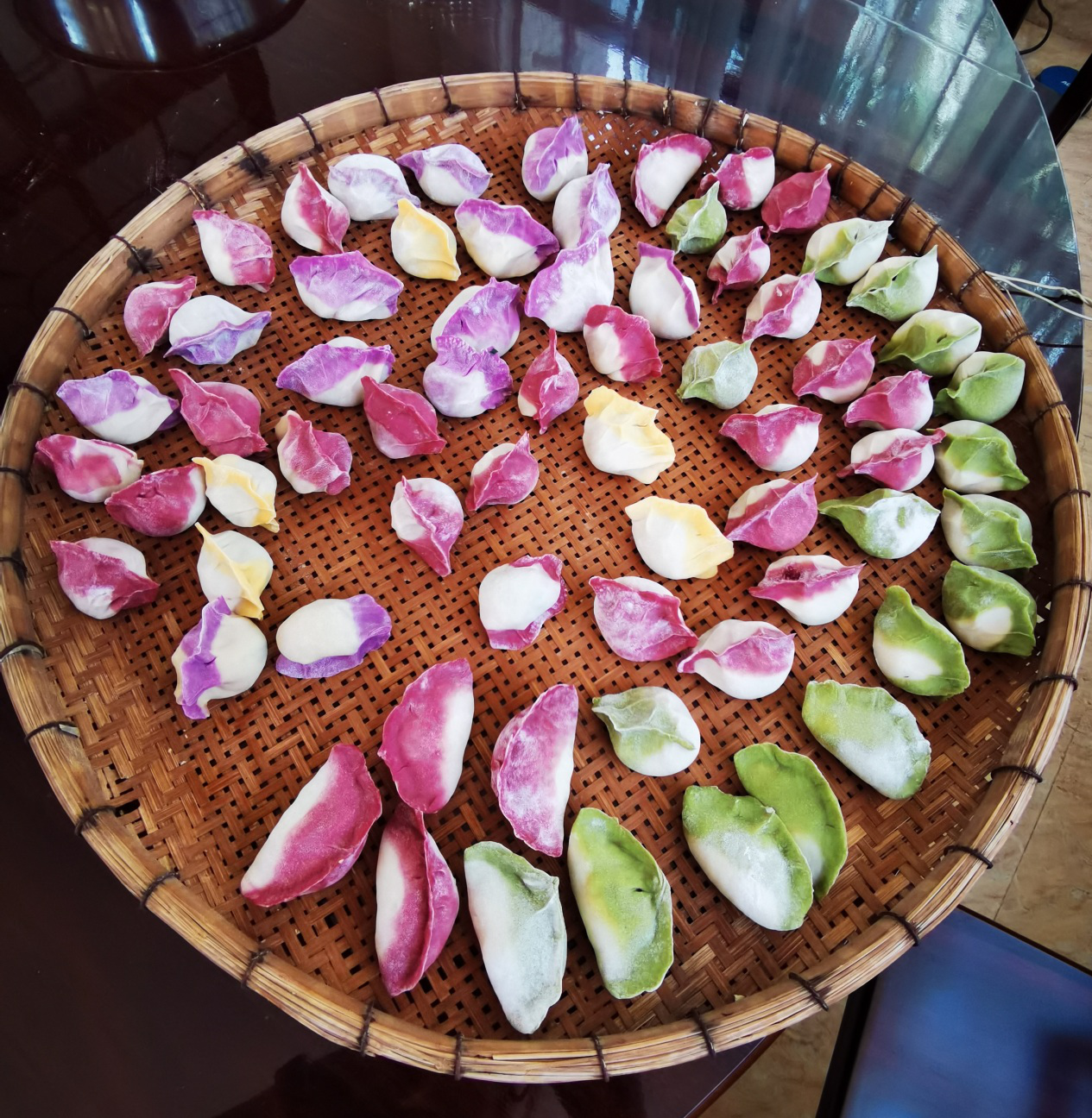 说干就干,我带着孩子们先将菠菜汁、火龙果汁与面粉融合,不一会儿,绿色、红色的面团便新鲜出炉,为这场包饺子大赛增添了一抹亮丽的色彩。培训环节正式开启,我一边熟练地示范擀饺子皮,一边耐心地讲解:“瞧,动作要沉稳,力度要均匀,如此擀出来的皮才能薄厚适宜。”随后又传授包饺子的窍门:“包饺子,馅料首先得‘性能达标’,确保严实不漏;其次外观也得讲究,得包出元宝的模样,寓意着新的一年财源广进。”